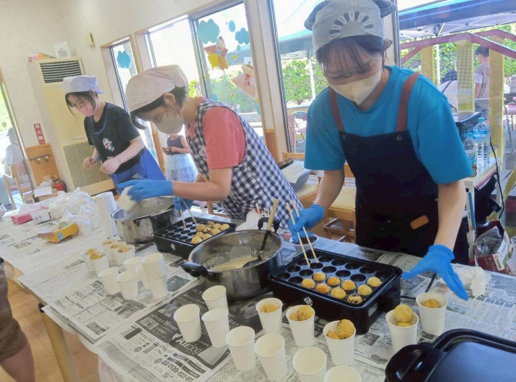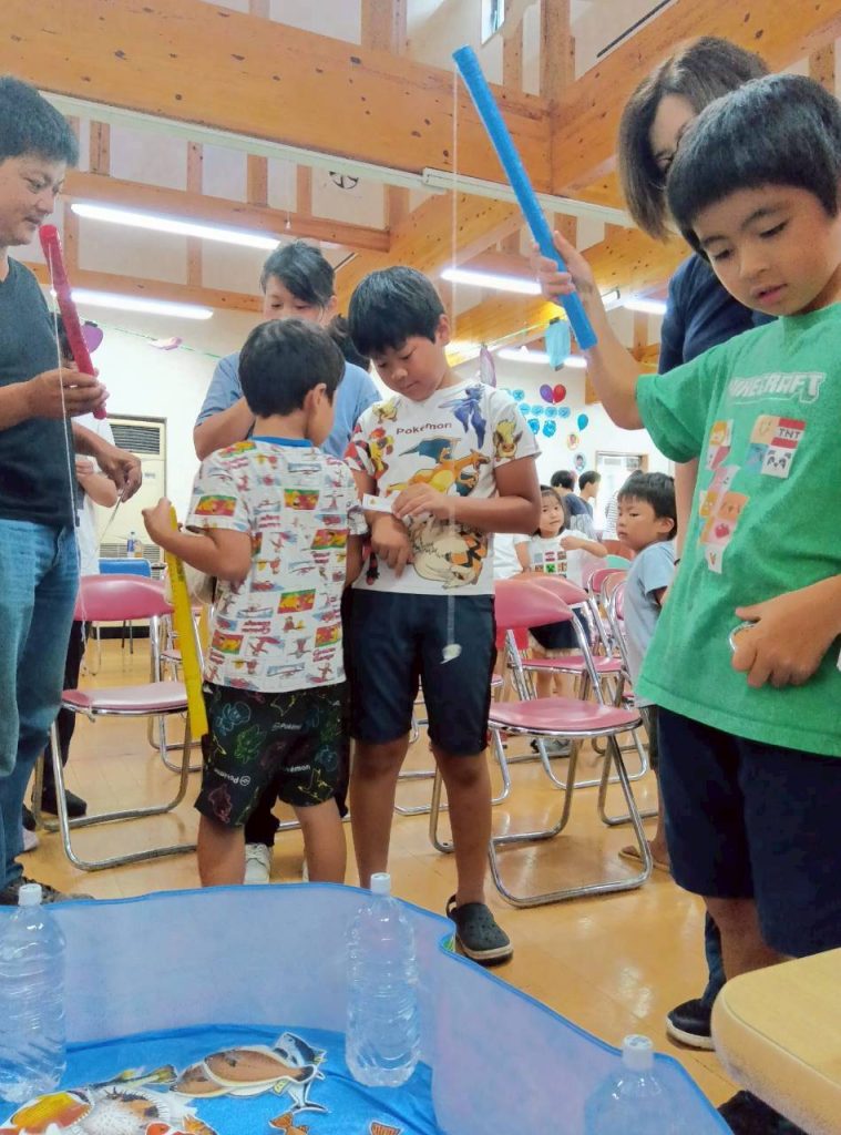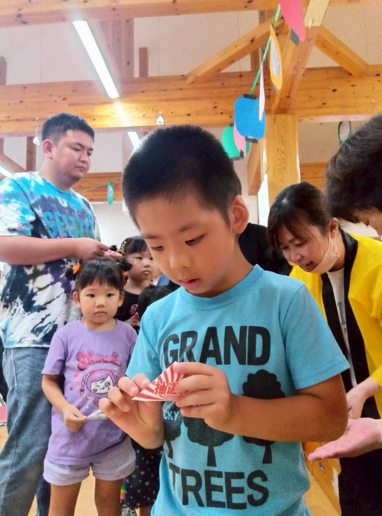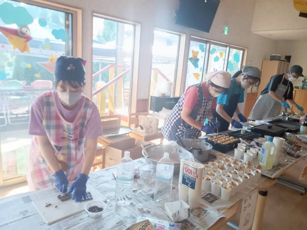 魚釣りや宝くじ、屋台では鈴カステラや焼きそば・ポップコーン等おいしい食べ物もあり、チケットを片手にワクワクしながら並び「おいしい」と満面の笑みがこぼれていました。
